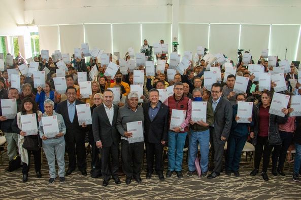 El gobernador de Hidalgo, Julio Menchaca, junto con el delegado regional del Infonavit, Canek Vázquez, entregaron 300 escrituras a derechohabientes que ya concluyeron con el pago de su crédito y hoy tienen certeza jurídica sobre su patrimonio.