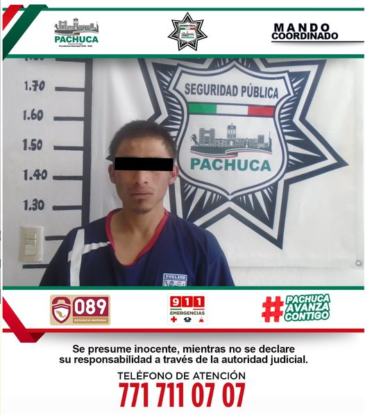 Elementos de la Secretaría de Seguridad Pública, Tránsito y Vialidad de Pachuca de Soto detuvieron a un joven por tentava de robo en el Fraccionamiento Paseos de la Plata.