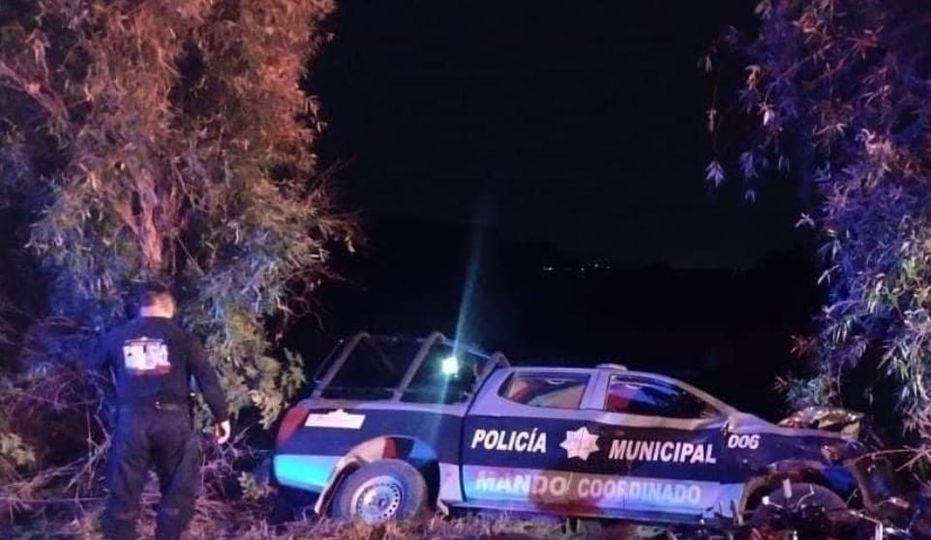 La unidad policiaca marcada con el número 006 y logotipos del gobierno municipal impactó de frente a una persona que circulaba en una motocicleta quien quedó gravemente herido tendido en el piso, mientras la patrulla se fue hacia la orilla del camino quedando sobre su costado.