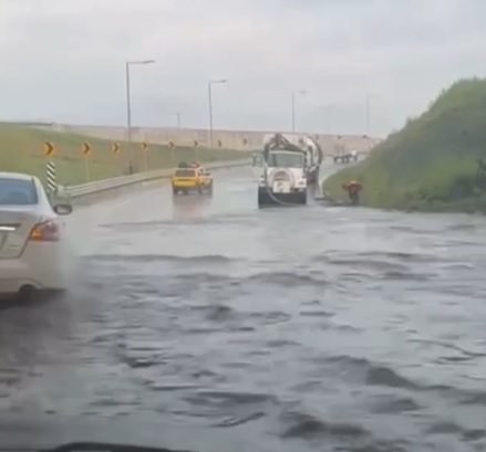 La mañana de hoy, viernes 26 de julio, se reporte la inundación de la vía rápida al Aeropuerto Internacional Felipe Ángeles, dirección #Tecámac
