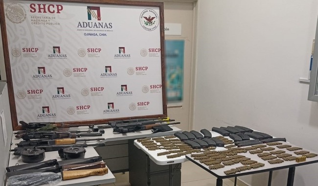 En el estado de Chihuahua, integrantes de la Guardia Nacional (GN), con apoyo de la Agencia Nacional de Aduanas de México (ANAM), aseguró fusiles de asalto, cargadores y cartuchos útiles, ocultos dentro de una lavadora y una bocina que eran transportadas dentro de un autobús de pasajeros, cuyo conductor y acompañante fueron detenidos.