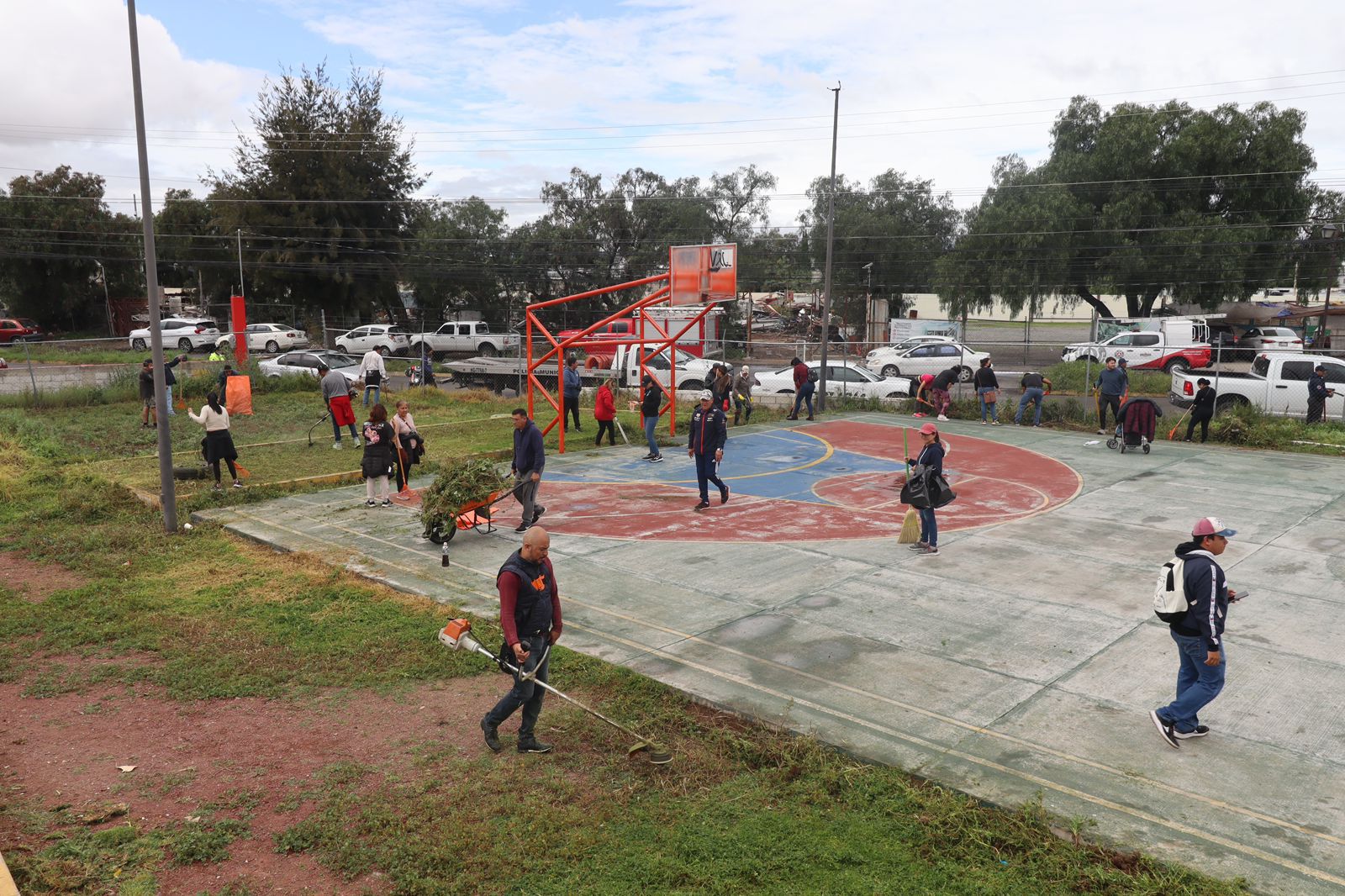 El presidente municipal de Pachuca, Jorge Reyes encabezó la tercera Faena por la Transformación, actividad que se desarrolló en la cancha deportiva del fraccionamiento Bosques del Peñar.