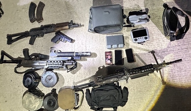 • 3 armas largas, entre ellas una ametralladora calibre 5.56 mm.