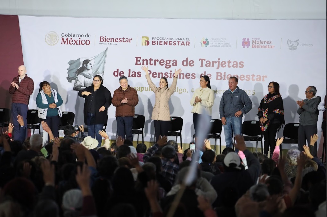 El gobernador de Hidalgo, Julio Menchaca Salazar, acompañó la gira de trabajo encabezada por la presidenta de México, Claudia Sheinbaum Pardo, quien realizó la entrega de tarjetas de las Pensiones del Bienestar en el municipio de Tepeapulco.
